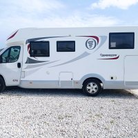 Autocaravana 5 plazas viajar/dormir, motor Citroen 2.2c.c 165c.v, cama basculante en el salón eléctrica de 135, cama en isla basculante manual de 150, oscurecedores delanteros Remis, placa solar 160w, inversor 600w, cámara de marcha atrás, nevera trivalente, agua caliente y calefacción Truma. portabicis para 4, toldo Fiamma, de febrero de 2024, km 85.000. Longitud 7450, Altura 2950. Precio 65.000€ cambio de nombre incluido.